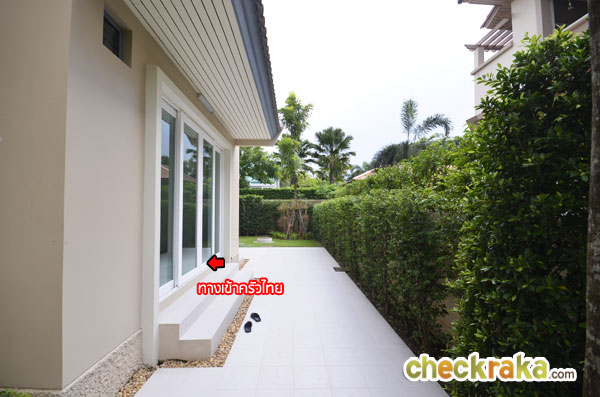 ประตูที่เห็นสามารถเปิดออกไปห้องแม่บ้าน และครัวไทยได้