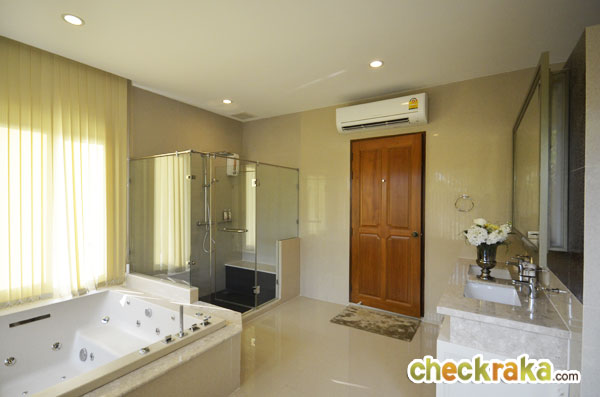 ภายในห้องน้ำแยกส่วนเปียก/แห้ง ห้องอาบน้ำที่กั้นเป็นกระจกเทมเปอร์ และมีอ่างจากุซซี่ให้ครบเลยค่ะ