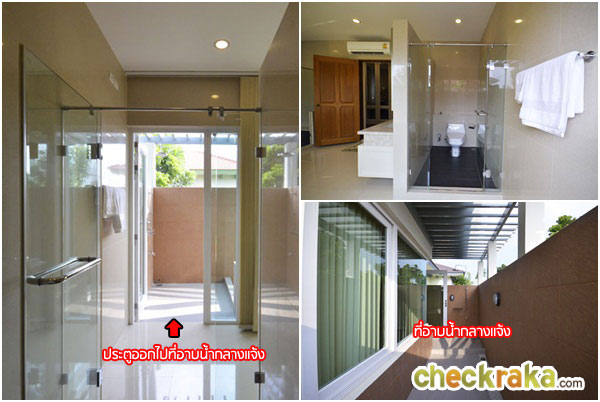 พื้นที่อาบน้ำกลางแจ้งนี้ อาจจะนำไม้กระถางมาปลูกเพิ่มความสดชื่นได้เช่นกัน