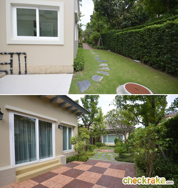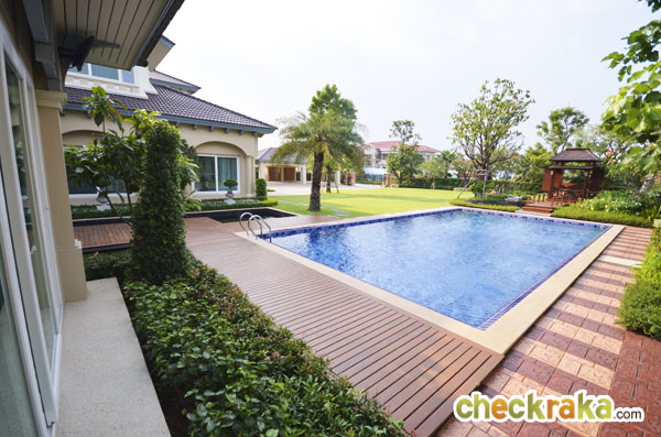 - ตัวโครงการโดยรวมและส่วนกลาง - ทางเข้าโครงการอยู่ติดหน้าถนน แยกพื้นที่ส่วน Guest Area และ Residential Area อย่างชัดเจน ทำให้ผู้อยู่อาศัยมีความเป็นส่วนตัวมากขึ้น พื้นที่โดยรอบเป็นที่อยู่อาศัยแนวราบเช่นเดียวกัน ทำให้มีความสงบ พื้นที่โครงการประมาณ 229 ไร่ โดยมีบ้านทั้งหมดประมาณ 206 หลัง อีกทั้งยังแบ่งโซนบ้านเป็น 2 โซน บรรยากาศโดยรวมจึงไม่อึดอัด ยิ่งส่วนกลางที่มีสวนสาธารณะกระจายรอบถึง 4 จุด สนามเทนนิส 2 คอร์ท พร้อม Club House สุดหรู และสระว่ายน้ำขนาดใหญ่ ที่มีทั้งฟิตเนสและซาวน่าให้ด้วย ทำให้โครงการมีสิ่งอำนวยความสะดวกรองรับได้อย่างครบครัน ค่าส่วนกลางเก็บอยู่ที่ 22 บาท/ตร.ว. ถือว่าไม่แพงมากสำหรับโครงการระดับนี้ แต่ถ้าใครอยากว่ายน้ำหรือเล่นฟิตเนสก็จ่ายเงินเพิ่มเป็นครั้งๆไป