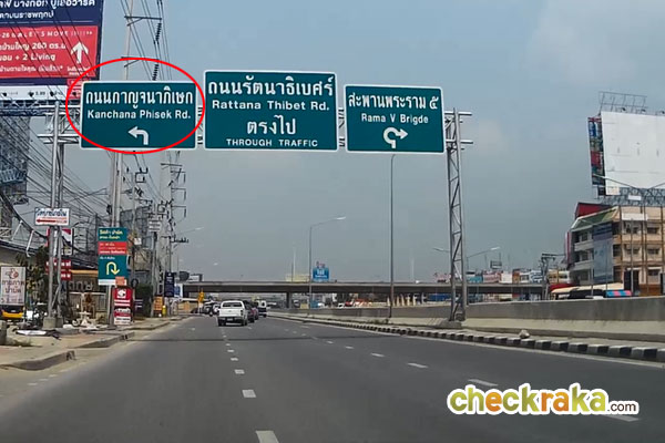 พอใกล้ถึงวงเวียนพระราม 5 จะมีป้ายบอกให้เบี่ยงออกทางซ้ายมือ