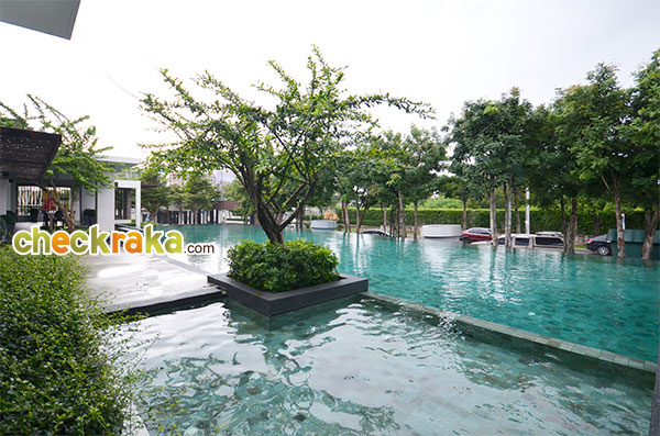 - สิ่งอำนวยความสะดวกและส่วนกลาง : อย่างสวนสาธารณะส่วนตัวขนาดเกือบไร่ที่ด้านท้ายของโครงการถือว่าเป็นไฮไลท์ได้เลย เพราะพื้นที่ส่วนนี้อยู่ติดริมแม่น้ำเจ้าพระยา แค่ลำพังบรรยากาศกับวิวก็กินขาดแล้วยิ่งมาประกอบกันกับการออกแบบ Landscape ของสวนที่ทำได้ค่อนข้างดี สวนสาธารณะส่วนตัวของโครงการนี้เลยสวยงามและเด่นมากทีเดียว ส่วนคลับเฮ้าส์ด้านหน้าทางเข้าหลักที่มีสระว่ายน้ำ พื้นที่นั่งเล่นและพื้นที่รับรองแขก ขนาดพอเหมาะ และมีดีไซน์เรียบง่ายสวยงาม เสียดายที่ไม่มีห้องซาวน่าหรือห้องออกกำลังกายทำให้คลับเฮ้าส์ขาดความหลากหลายไปหน่อย ส่วนอีกอย่างที่น่าเป็นห่วงคือเรื่องความหนาแน่นของการใช้งานคลับเฮ้าส์ เพราะต้องใช้ร่วมกันระหว่างลูกบ้าน 5 โครงการ (น่าจะประมาณ 700 กว่ายูนิตขึ้น) ซึ่งถ้าทุกคนมาใช้งานพร้อมๆ กันในวันหยุดสุดสัปดาห์ต่อให้คลับเฮ้าส์ใหญ่กว่านี้ก็คงจะไม่เพียงพอ แต่เท่าที่ไปเยี่ยมชมในวันธรรมดาสระว่ายน้ำค่อนข้างโล่งค่ะ ดังนั้นถ้าลูกบ้านเลือกใช้คลับเฮ้าส์ในวันและเวลาที่ไม่ค่อยหนาแน่นได้ คลับเฮ้าส์นี้ก็ถือว่าสวยงามและน่าใช้ทีเดียวเลยค่ะ