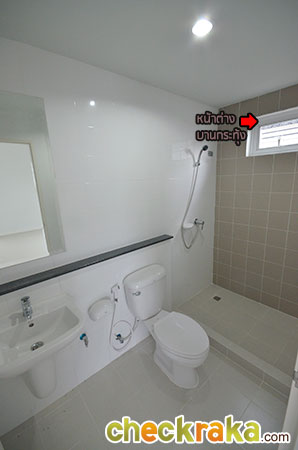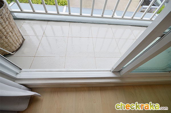 มีหน้าต่างบานเลื่อนเล็กๆ และช่องต่อท่อน้ำทิ้งเตรียมไว้ให้วางพวกซิ้งค์ล้างจานเผื่อจัดพื้นที่เป็นครัวเบา