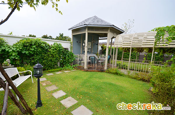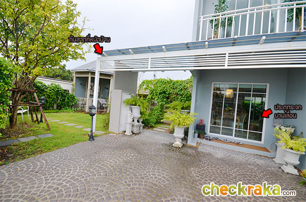 ส่วนพื้นที่รอบๆ บ้านของบ้านตัวอย่างหลังที่โชว์มีที่ดินรอบบ้านค่อนข้างเยอะเลยแต่งเป็นมุมพักผ่อนได้เยอะทีเดียว