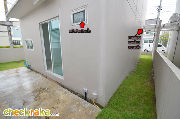 โซนซักล้างหลังบ้านกว้างประมาณ 2 เมตรกว่า ตัวพื้นเป็นคอนกรีตฉาบเรียบ ส่วนพื้นที่ด้านข้างตัวบ้าน