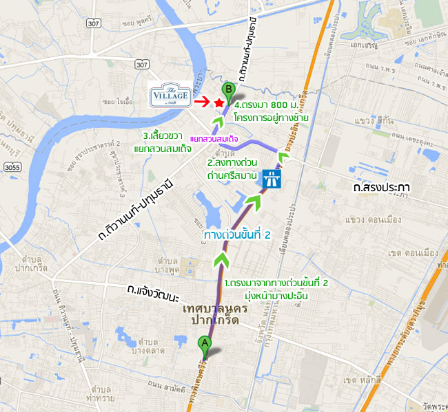 เส้นทางเข้าโครงการที่ 1 มาจากทางด่วนขั้นที่ 2 ลงด่านศรีสมาน