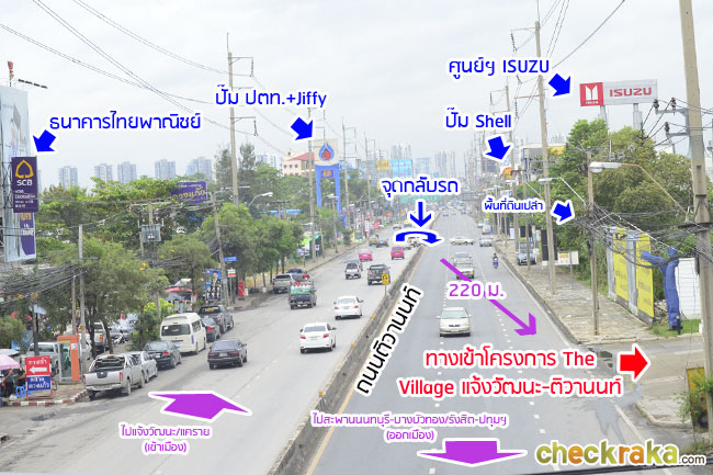 ทางเข้าโครงการ The Village แจ้งวัฒนะ-ติวานนท์ จะอยู่ทางซ้ายมือค่ะ