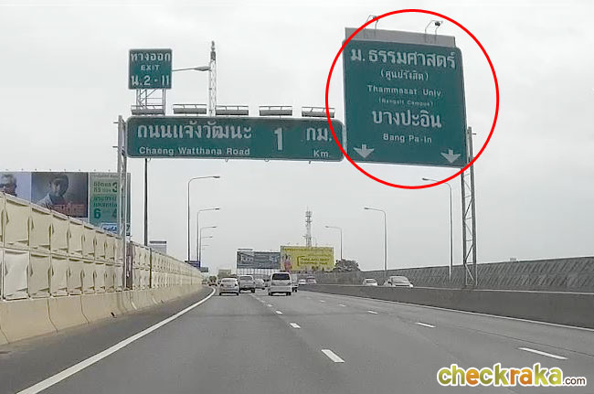 พอถึงทางลงถนนแจ้งวัฒนะยังไม่ต้องลงค่ะ ให้ตรงไปก่อนโดยยึดป้ายม.ธรรมศาสตร์(ศูนย์รังสิต)-บางปะอินเหมือนเดิม