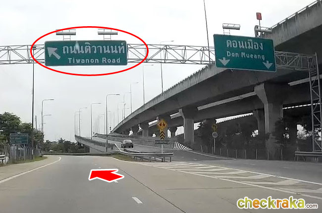 เบี่ยงซ้ายไปตามป้ายปากเกร็ดรังสิต พอถึงตรงแยกสวนสมเด็จแล้วให้เลี้ยวขวาเข้าถนนติวานนท์ค่ะ