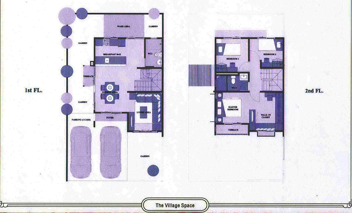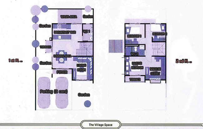 - แบบบ้าน : มีแบบเดียวคือบ้านแฝด 2 ชั้น 2 ที่จอดรถ