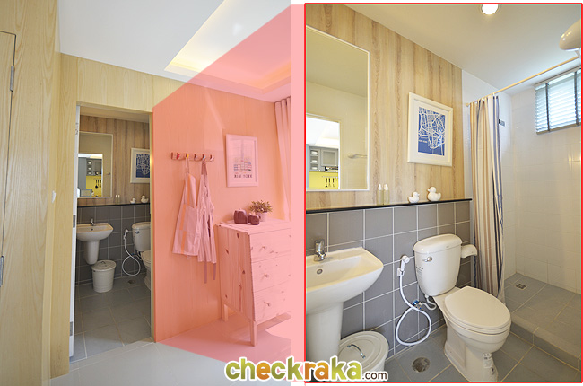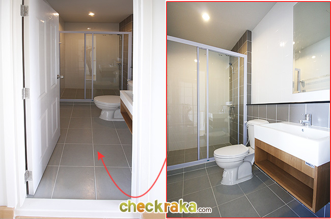 ส่วนห้องที่ติดกับ Master Bedroom เป็นห้องน้ำค่ะ ด้านบนจะมีแยกส่วนแห้งและส่วนเปียกทำเป็นห้องกั้นด้วยประตูบานเลื่อน