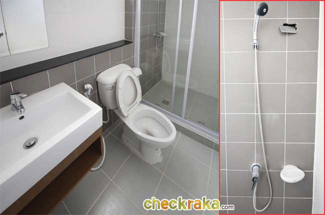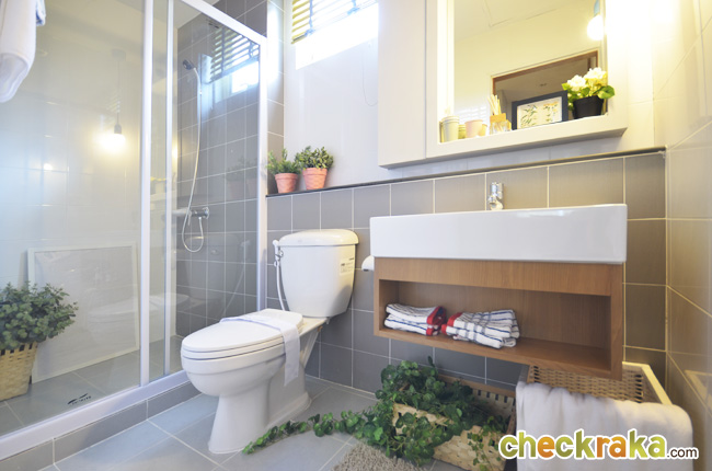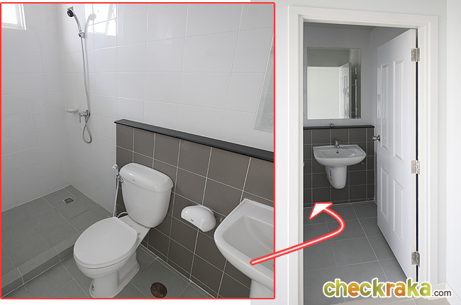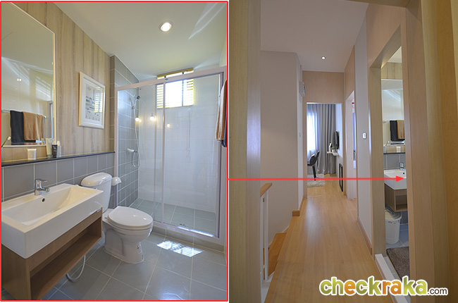สำหรับห้องน้ำชั้นบนของบ้านแบบจอดรถ 2 คันก็แยกส่วนแห้งส่วนเปียกไว้เช่นกัน