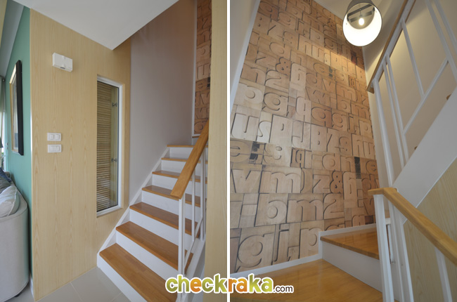 - แบบบ้านและวัสดุโดยรวม สำหรับโครงสร้างของทาวน์โฮมนั้นเป็นแบบพรีแคส (PRE-CAST) มีทั้งหมด 2 แบบบ้าน คือแบบบ้านจอดรถ 1 คัน และแบบบ้านจอดรถ 2 คัน ซึ่งโครงการนี้จะมีสัดส่วนบ้านของบ้านแบบจอดรถ 2 คันเยอะกว่า ดีไซน์ตัวบ้านเป็นแบบ Modern ตามยุคสมัย ไม่ได้เน้นความหวือหวา บ้านที่ขายจริงเป็นบ้านเปล่าที่ภายในบ้านได้ทำพื้นที่แบ่งไว้เป็นสัดส่วนของแต่ละห้องแล้ว สามารถใช้งานได้ครบพร้อม วัสดุที่ใช้ก็ได้ตามมาตรฐาน อย่างเช่นวงกบประตูและหน้าต่างหน้าบ้านเป็นอะลูมิเนียมอบสีขาวแบบบานเลื่อน กระจกเขียวตัดแสงหนา 5 มม. ประตูด้านในบ้านเป็น UPVC พื้นบ้านเป็นกระเบื้องพอร์ซเลน 60x60 พื้นบ้านชั้นบนเป็นพื้นไม้ลามิเนต และโถสุขภัณฑ์ในห้องน้ำใช้ของ American Standard