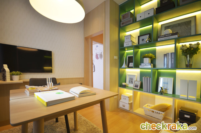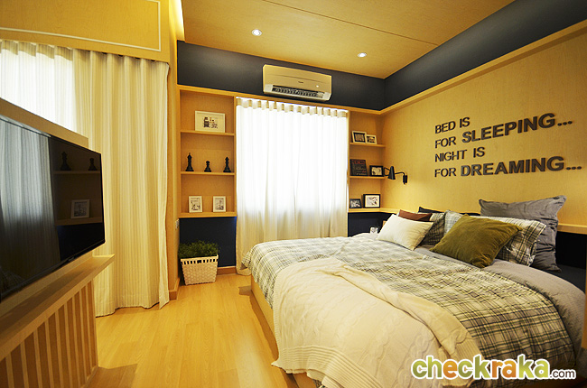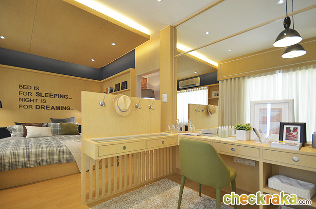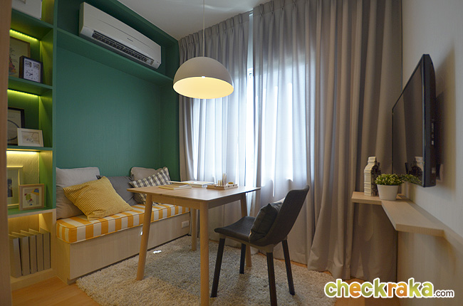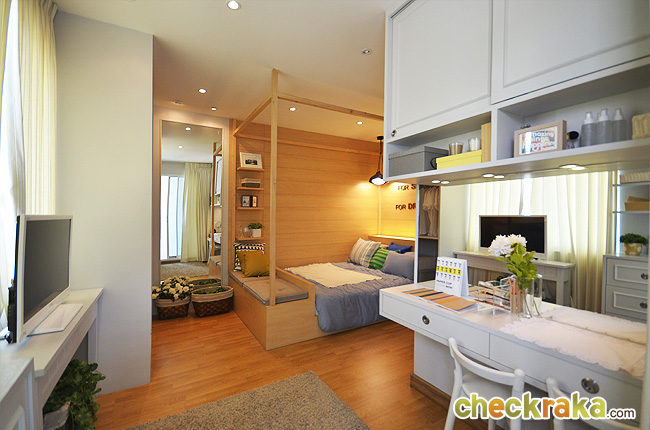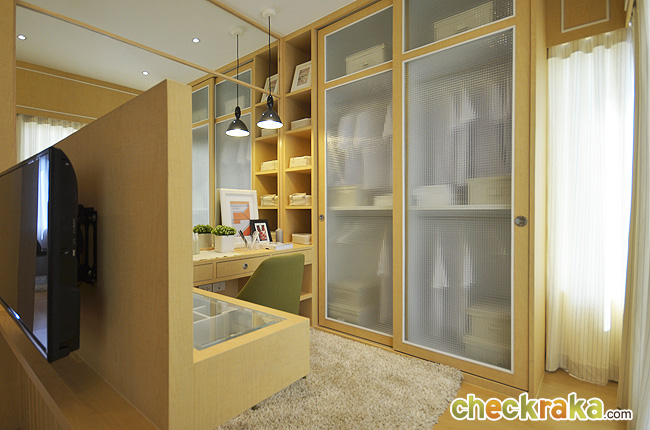 มีชั้นวางของ Built-in และตู้ Built-in รอบๆ ห้อง ที่ช่วยประหยัดเนื้อที่ได้ดีค่ะ