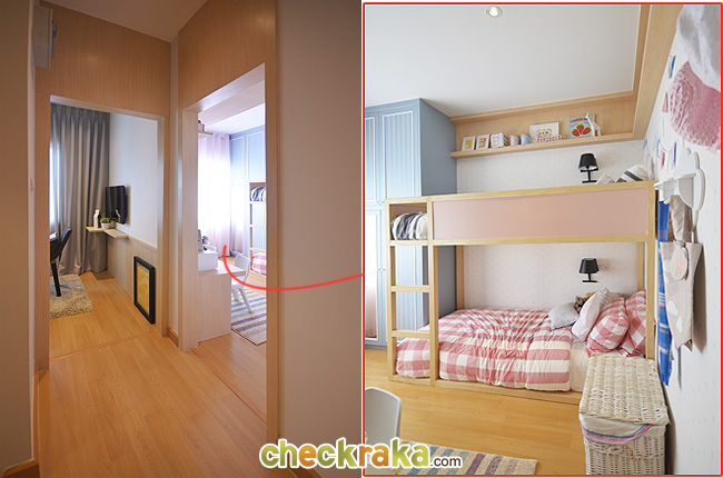 ห้องถัดไปที่ติดกับห้องน้ำเป็นห้องนอนที่ 2 โครงการตกแต่งด้วยเตียง 2 ชั้น