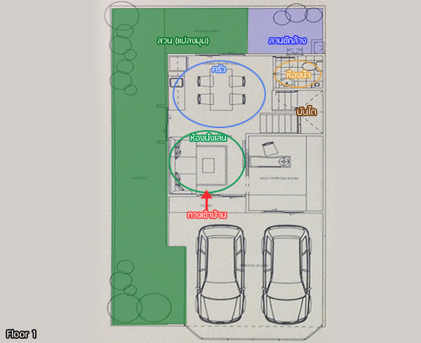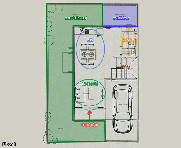 มาดูแปลนบ้านชั้น 1 กันก่อน Layout เหมือนกันแบบบ้านแบบแรกเลยค่ะ