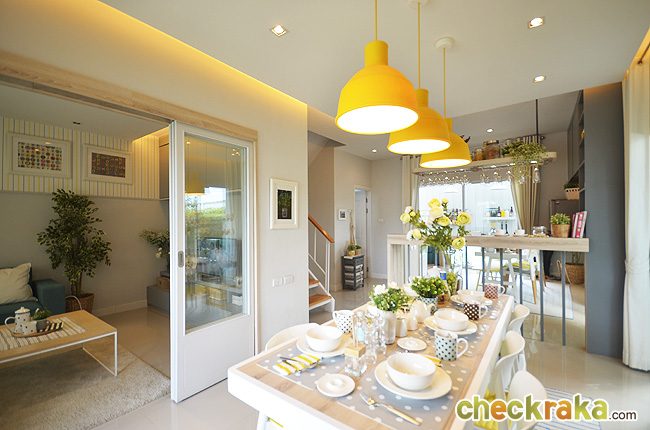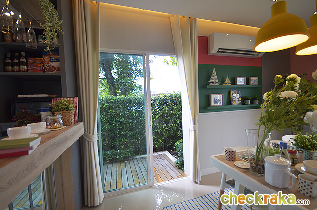 เนื่องจากเป็นบ้านแปลงมุม จึงมีพื้นที่สำหรับวางโต๊ะเก้าอี้ได้อีก 1 ชุด