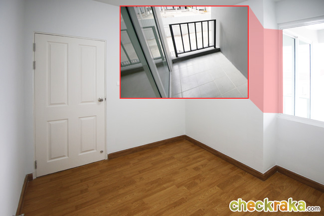 ด้านซ้ายของห้องมีประตูบานเลื่อนออกไปยังระเบียง