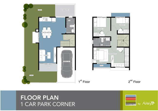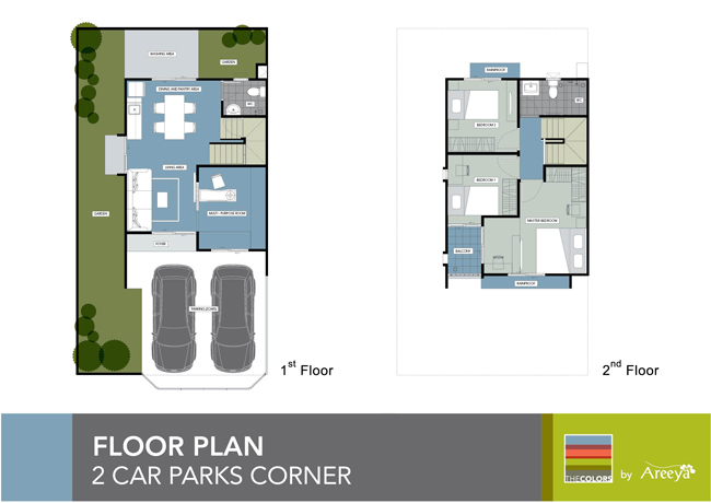 ทาวน์โฮม 2 ชั้น แบบจอดรถ 2 คัน (แปลงมุม) เนื้อที่บ้านเริ่มต้นที่ 26.70 ตร.ว. ราคาเริ่มต้นที่ 2,140,000 บาท