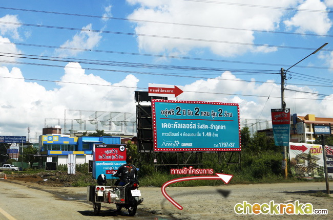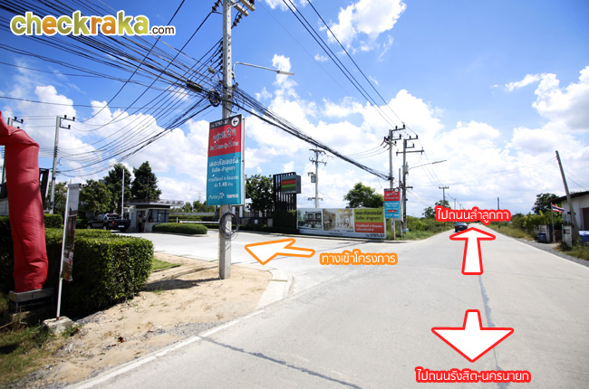 ถึงแล้วค่ะ ทางเข้าโครงการ จากถนนลำลูกกา