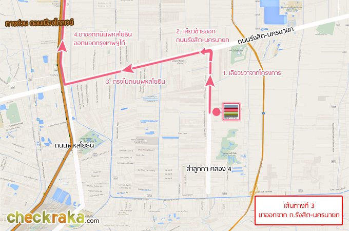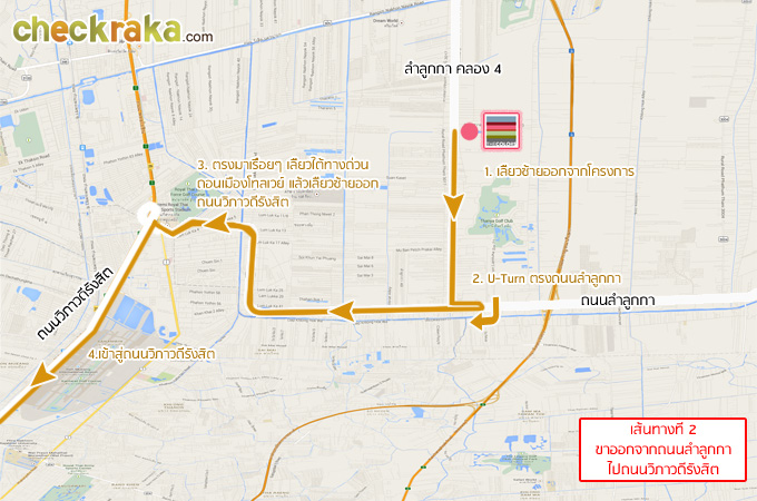 ทีนี้ก็สามารถเดินทางเข้าสู่ถนนลำลูกกาได้ตามเส้นทางที่ 1 ได้เลยค่ะ