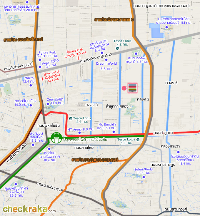 มหาวิทยาลัยนอร์ทกรุงเทพ วิทยาเขตรังสิต ประมาณ 5 กม.