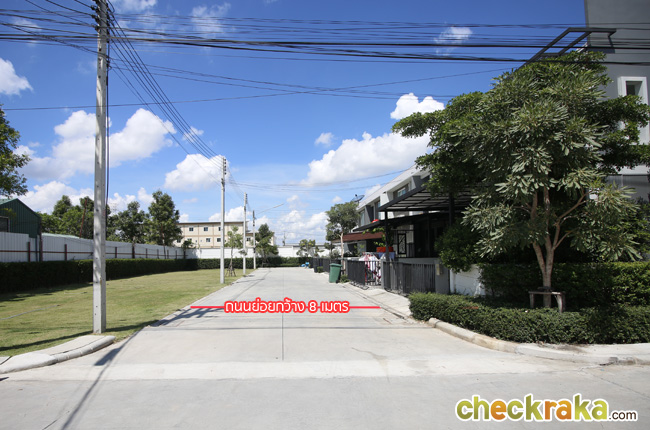 ถนนย่อยหน้าบ้านกว้าง 8 เมตร ถือว่ากว้างทีเดียวค่ะ จอดรถหน้าบ้านได้ไม่เกะกะ
