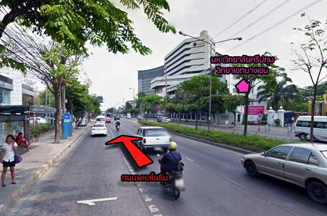 ตรงไปยังถนนพหลโยธินเรื่อยๆ จะผ่านมหาวิทยาลัยศรีปทุม วิทยาเขตบางเขน