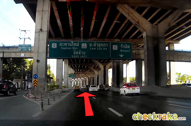 ให้ตรงไปต่อจนเจอป้ายไปลำลูกกา ตรงไปเรื่อยๆ เลยค่ะ