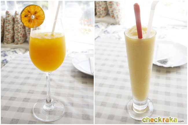 เดี๋ยวลองสั่งน้ำมาดื่มก่อนนะคะ รูปทางซ้ายมือคือ Fresh Orange Juice เป็นน้ำส้มคั้นสดค่ะ ชื่นใจจริงๆ