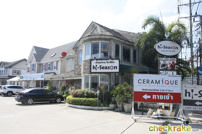 สำหรับวันนี้ทีมงานขอพาไปเยี่ยมชมร้านอาหารเด่นอีกร้านที่อยู่ใกล้กับอารียา โคโม่ ชื่อร้านว่า "hi-Season Cafe" ค่ะ เป็นอาหารแนว Thai & International Cuisine ตั้งอยู่ตรงซอยบางนา-ตราด 50 ก่อนถึงจุดตัดกับถนนศรีนครินทร์หากมาจากชลบุรีค่ะ