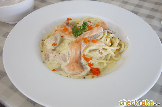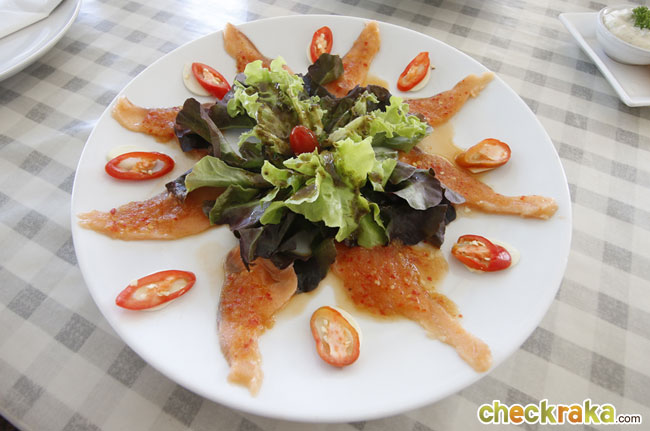 แซลมอนสด ราดน้ำซอสเปรี้ยวกำลังดี ทานคู่กับผักที่จัดมาอย่างสวยงาม อร่อยล้ำคอนเฟิร์มค่ะ