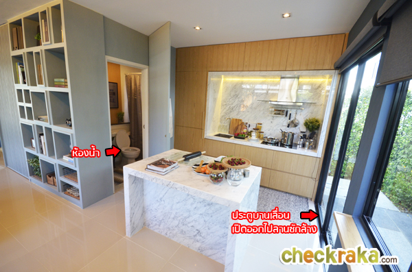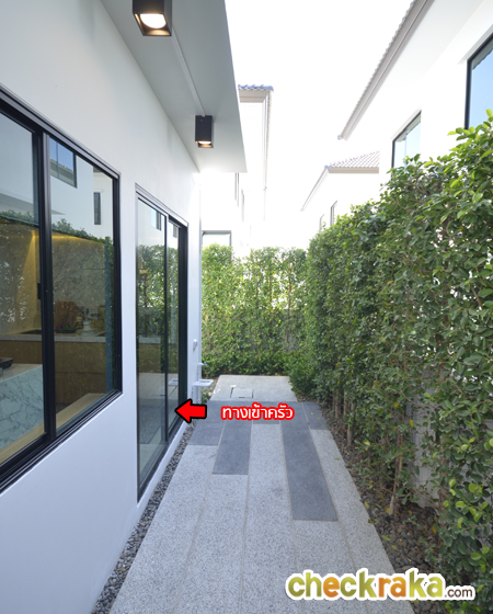 ด้านหลังบ้านจะเป็นส่วนของห้องครัว มีหน้าต่างบานเลื่อนระบายอากาศ และประตูเปิดออกไปลานซักล้างได้