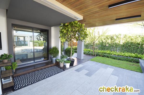 เข้ามาในพื้นที่บ้านประตูทางเข้าอยู่ตรงที่จอดรถ เวลาจอดรถแล้วเดินเข้าบ้านได้ไม่ร้อน ไม่เปียกแน่นอนค่ะ