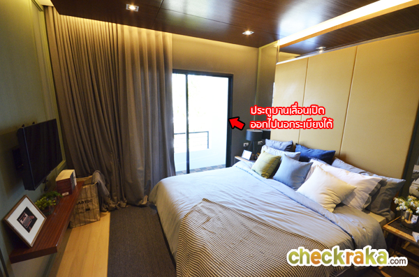 ห้อง Master เป็นห้องมีความกว้างตามความกว้างของตัวบ้านเลยค่ะ สามารถวางเตียงขนาดใหญ่ได้สบาย