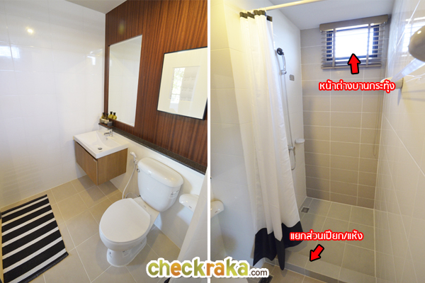 ห้องน้ำภายในห้องมีสุขภัณฑ์ให้ครบของ American Standard พร้อมก่อแยกส่วนเปียก/แห้งให้ด้วยค่ะ