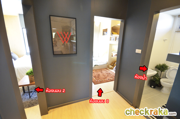 มาดูอีกฝั่งของบ้านคือ ห้องนอน 2 และ ห้องนอน 3 กันค่ะ ความพิเศษของ 2 ห้องนี้คือผนังที่กั้นระหว่างห้อง