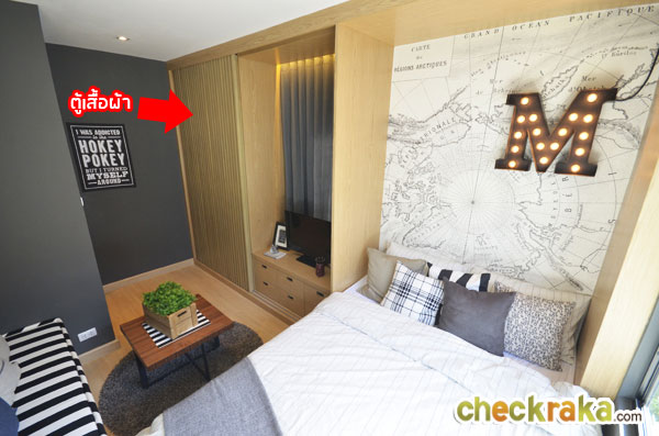 กลับมาดูในห้อง จากมุมนี้จะมองเห็น Walk-in Closet และห้องน้ำ