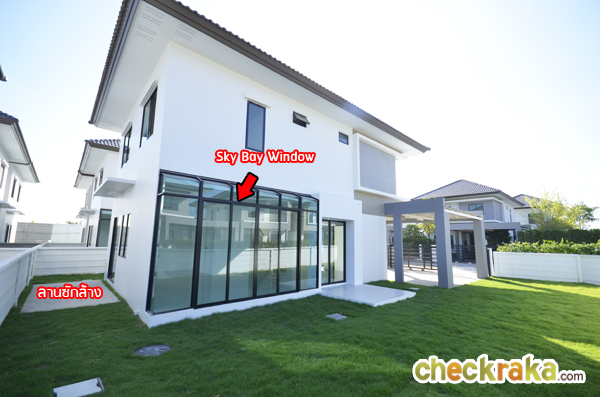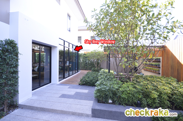 มองจากมุมข้างบ้าน จะเห็นผนังบ้านเปลี่ยนเป็น Sky Bay Window ได้ชัดเจนเลยทีเดียว