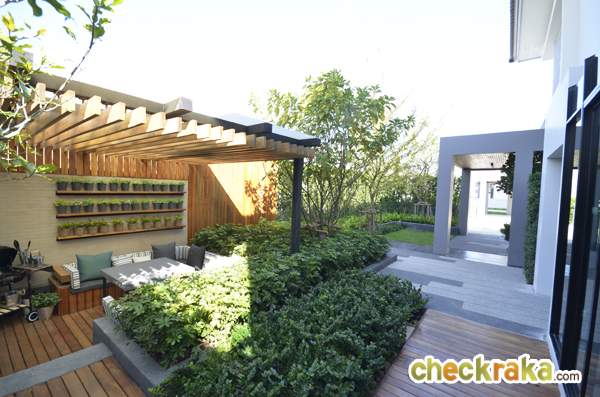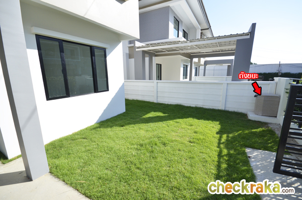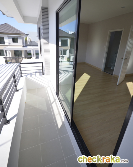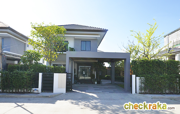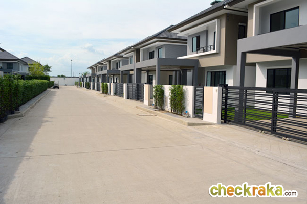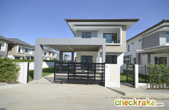 - แบบบ้านและวัสดุ : ในส่วนของแบบบ้านมีแค่แบบเดียว ดีไซน์บ้าน Contemporary Modern Style ดูดีทีเดียว สีภายนอกเป็นสี Earth tone สบายตา รั้วระหว่างบ้านไม่สูงมาก (ซึ่งก็เป็นปกติของบ้านในโครงการ) แต่จุดเด่นคือมีห้องนอนถึง 3 ห้อง พร้อม 1 ห้องอเนกประสงค์ และมี Sky Bay Window ทำให้บ้านมีความสว่าง ให้ความรู้สึกโล่ง โปร่ง ประหยัดพลังงานด้วยนะคะ วัสดุภายในบ้านหลักๆ เช่น กรอบประตูหน้าต่างเป็นอลูมิเนียม กระจกประตูและหน้าต่างเป็นกระจกเขียวตัดแสง พื้นกระเบื้องแกรนิตโต้ พื้นบันไดเป็นไม้สำเร็จรูป พื้นด้านบนเป็นลามิเนตสำเร็จรูป ใช้อุปกรณ์ห้องน้ำ และสุขภัณฑ์ของ American Standard เป็นต้น
