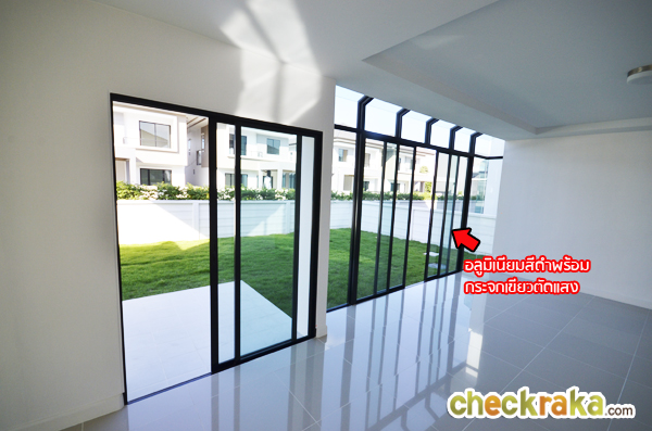กรอบประตูหน้าต่างของที่นี่ทั้งหมดเป็นอลูมิเนียมสีดำ ส่วนกระจกทั้งหมดเป็นกระจกเขียวตัดแสง