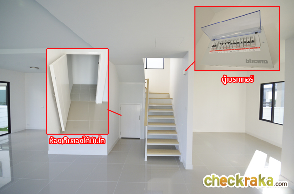 มุมนี้เป็นส่วนของห้องเก็บของใต้บันได ถ้าเป็นบ้านตัวอย่างจะ Built in ชั้นวางของและประตูบานเลื่อนมาให้