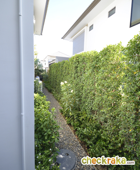 ด้านข้างบ้านอีกฝั่งหนึ่ง ทางโครงการโรยหินเป็นทางเดิน และลงต้นไม้ดูร่มรื่น สวยงามทีเดียวค่ะ