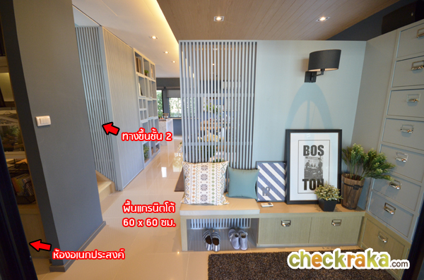 เข้ามาด้านในตัวบ้านจะเจอ Built in Partition พร้อมกับตู้เก็บของวางกั้นไว้