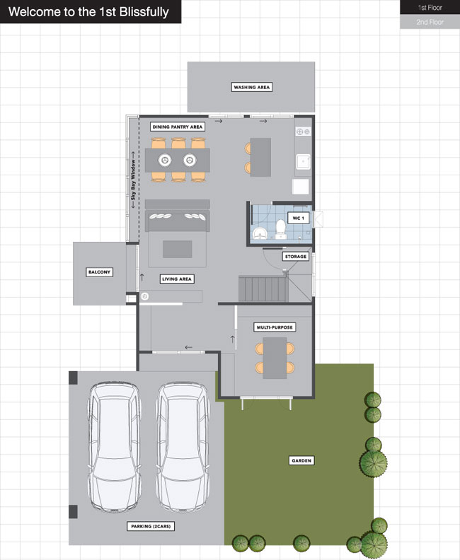 - ขนาดที่ดินแต่ละแปลง เริ่มต้นที่ 39.6 ตร.ว. และมีขนาดพื้นที่ใช้สอยอยู่ที่ 161 ตร.ม.