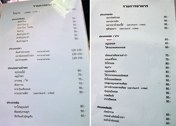 ตัวอย่างเมนูและราคาอาหารของทางร้าน