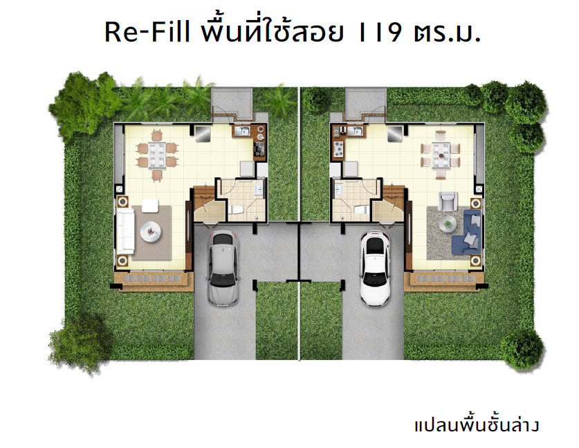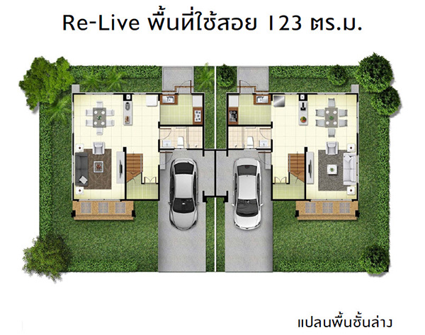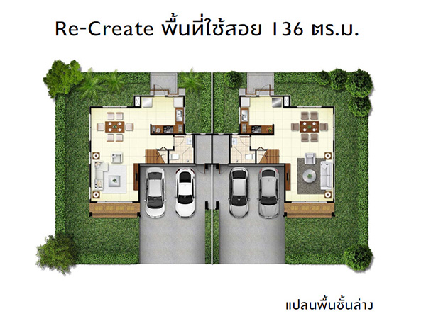 แบบบ้านแฝด 2 ที่จอดรถ Re-Create