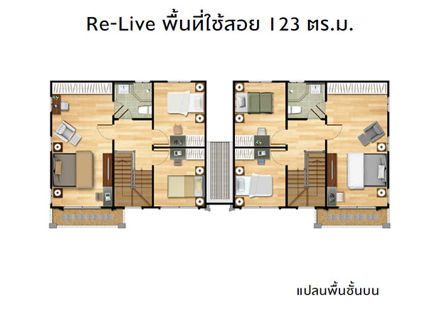 - มีแบบบ้านทั้งหมด 4 แบบ คือ แบบบ้าน RE-FILL, RE-LIVE, RE-CREATE และ PARADIZ