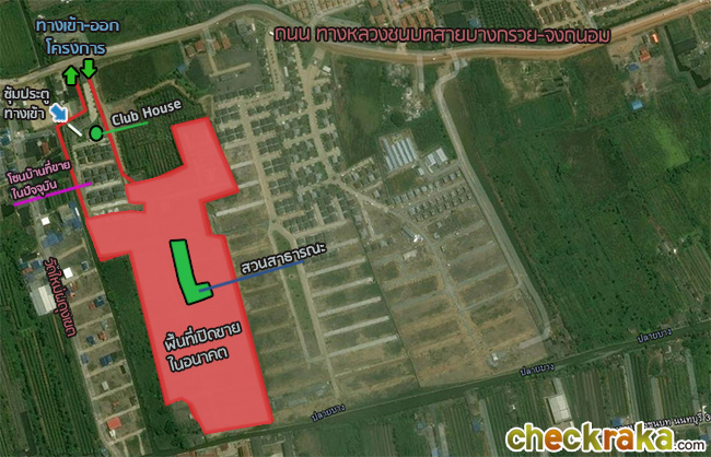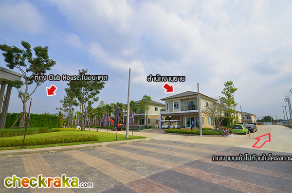 คือที่ตั้งของบ้านตัวอย่างและสำนักงานขาย ส่วนถ้าวิ่งตรงไปตามถนนเมนจะเข้าสู่พื้นที่ด้านในของโครงการ