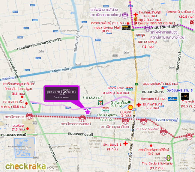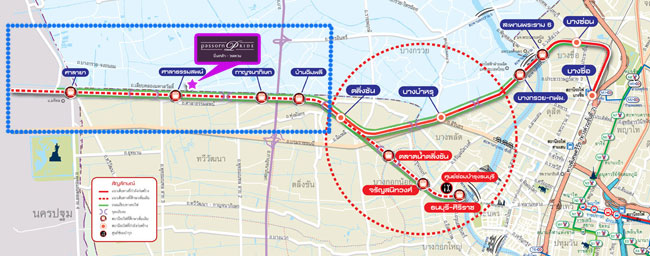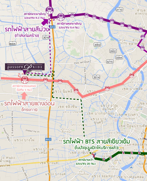 นอกจากนี้โครงการยังอยู่ใกล้แนวรถไฟฟ้าชานเมืองสายสีแดงอ่อน (ส่วนต่อขยายช่วงตลิ่งชัน-ศาลายา) (คาดว่าจะเปิดให้บริการได้ในช่วงปี 2562 เป็นต้นไป) ก็เป็นอีกโครงการที่พอสร้างเสร็จแล้ว จะทำให้การเดินทางเข้าสู่ใจกลางเมืองสะดวก และรวดเร็วมากขึ้นค่ะ โดยสถานีที่ใกล้โครงการที่สุด คือ สถานีศาลาธรรมสพน์ ห่างจากโครงการคาดว่าจะไม่เกิน 5 กม. ค่ะ